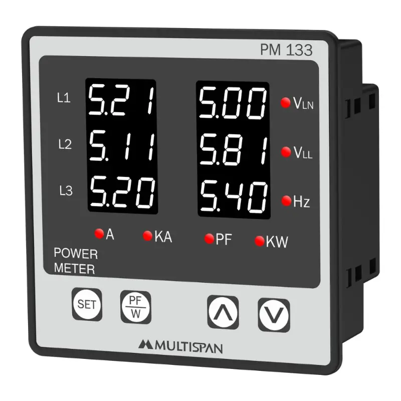 Multispan PM-133 3 Phase Power Meter 100 -270V AC/DC Supply 96X96